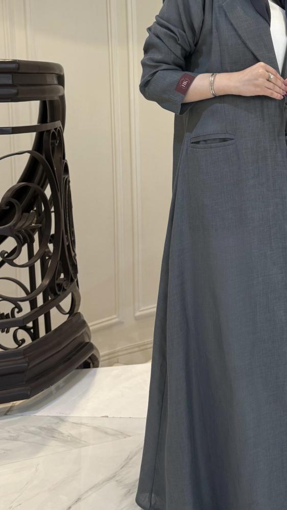 تميزي بإطلالة تجمع بين الرقي والبساطة مع عباية البليزر الرمادية المصممة بأسلوب عصري . تأتي بقماش لينن واقف ومريح، بلون رمادي أنيق يناسب جميع الأذواق. تصميمها الانسيابي وخطوطها النظيفة يجعلها مثالية للإطلالات اليومية والمناسبات العملية.